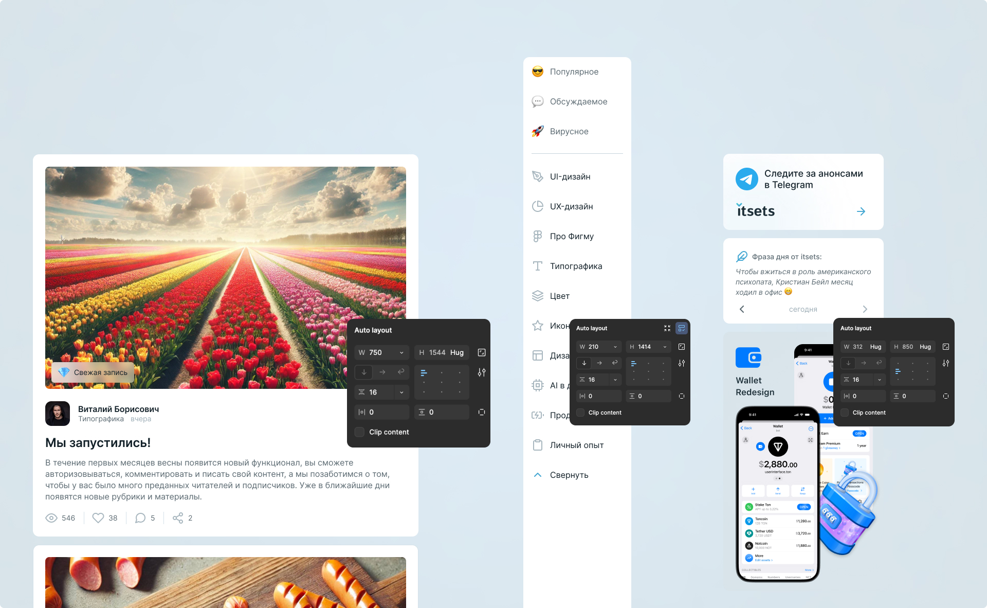 Карточка статьи на сайте itsets кажется простой и лаконичной. Но под её внешней простотой скрыта целая система, которой можно управлять очень гибко. Именно она идеально подходит для демонстрации всех возможностей компонентов:
